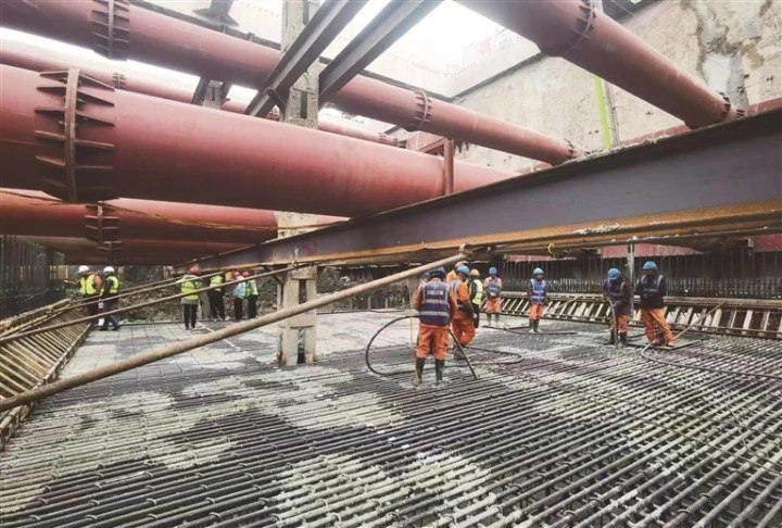 頂部本網(wǎng)訊 (記者彭軍君 通訊員李顏東 戈德旺)22日,在經(jīng)過10余個小時的緊張施工后,海太長江隧道江南段的首塊底板完成澆筑,為后續(xù)主體結(jié)構(gòu)施工筑牢基礎(chǔ)。